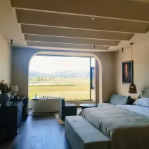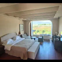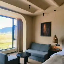 The hotel room was very spacious, absolutely my favorite style. You could see Jade Dragon Snow Mountain right from the room. Sitting on the sofa, reading a book, and just looking up to see the snow-capped mountains – it was truly wonderful. The welcome fruits and snacks for check-in could be taken back to the room to enjoy at your leisure. The highlight, though, is the cafe on the second-floor workspace area; the atmosphere is incredible, and the framed shots you can take there are stunning. For anyone who loves afternoon tea, coffee, or working remotely, this place is pure bliss. Oh, and one more thing: the toiletries in the room are fantastic and so good, I almost wanted to take them home with me!