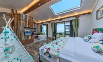 入住的豪華大床房更是驚喜連連!房間採用通透的開放式設計,衞浴區與睡眠區通過藝術玻璃巧妙區隔,既保證了私密性又讓空間感倍增。