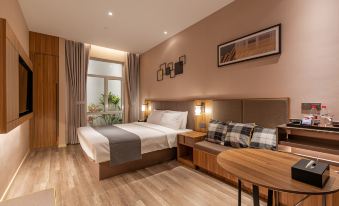房間大小還行,衞生也比較乾淨,房間是大落地窗,對着後面的小區,比較安靜。前台服務也很熱情,有機器人可以幫忙把外賣送到房間,門口有酒店自己的免費停車場。就是酒店位置有點偏,出門遛狗要走的稍微遠一點才能到河邊的草坪。總體還算可以。