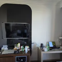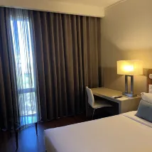 It says it's a 4-star hotel, but it doesn't feel like one. There are no slippers inside, and it's supposed to be nighttime, but it's very dark inside. I requested a twin, but I was given a double.