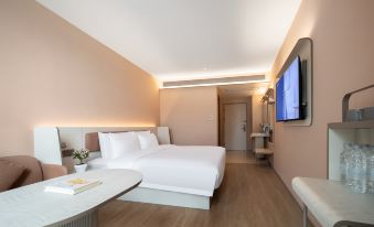 With low-saturation comfortable color matching and soft and neat lines, the store is eye-catching and a brand-new masterpiece. It interprets the aesthetic concept of "pragmatism", intelligent high-tech equipment, and creates 5 self-service experiences, such as 30s check-in, 0s check-out, 24h laundry, etc.