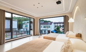 房型:從一個人到四五個人適合的房型都有,我們是四個成人,快到五一了臨時決定去南山竹海,所以很多酒店或者民宿已經沒有合適的房間了,這家有2張1.8米床的房型,特別喜歡這個房型的兩扇大落地窗,感覺窗明幾凈。