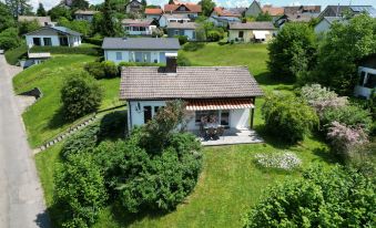 Cosy single-family house "Schöne Aussicht". On the outskirts, 300 m from the centre, in a quiet position on a slope. In the house: central heating system. Stepped path (14 steps) to the house. Parking at the house. Supermarket 3 km, restaurant 300 m, bakery 4 km, bus stop 300 m, railway station "Löffingen" 5 km, outdoor swimming pool 800 m, indoor swimming pool 500 m, bathing lake "Kirnbergsee" 5 km. Golf course (18 hole) 20 km, cross country ski track 300 m. Nearby attractions: Freiburg 45 km, Donaueschingen 20 km, Freizeitpark und Zoo Tatzmania 3.5 km. Well-known ski regions can easily be reached: Feldberg / Hochschwarzwald 35 km. Well-known lakes can easily be reached: Titisee 23 km, Schluchsee 39 km. Hiking paths: Schwarzwald, Schluchseegebiet, Feldberggebiet 35 km, Wutachschlucht 12 km. Free parking for motorcycles within 300 m. 3-room house 47 m2. Beautiful and cosy furnishings: living/dining room with satellite TV (flat screen), radio, CD-player and DVD. Exit to the garden, to the terrace. 1 room with 1 double bed (2 x 90 cm, length 190 cm). 1 room with 2 beds (90 cm, length 190 cm). Kitchen (oven, 4 ceramic glass hob hotplates, toaster, kettle, microwave, electric coffee machine). Shower/WC. Terrace 10 m2. Terrace furniture, barbecue (portable). Facilities: washing machine, telephone, children's high chair, baby cot, hair dryer. Internet (WiFi, free). Parking. Please note: non-smoking house. Bookings accepted for holiday purposes only.