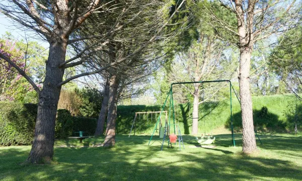 Bien que l'intérieur étant sommaire (la décoration peut être améliorée), l'extérieur fait sensation. Nous n'y étions que de passage pour une nuit et je ne suis pas certaine qu'y rester 1 semaine m'aurait convenu (les logements sont petits pour 4) Salle de bain très moderne par contre et logement propre. Néanmoins nous avons adoré notre court séjour. Il n'y pas la clim mais pas dérangeant pour moi car le prix n'est pas très élevé c'est donc complétement approprié. :) Le site est situé pas très loin de la ville d'Orange. Cadre superbe : pinède, cigales, lauriers, piscine... :) On s'y sent de suite bien. La terrasse de notre logement donnait sur la pinède et les jeux. Sans vis à vis. Vraiment très agréable. La piscine est plus petite que ce que je m'imaginais mais suffisante au vu du nombre de logement. Elle est très agréable. Il y a des jeux pour les enfants. Le petit déjeuner est très bon. Un restaurant pizzeria très sympa se trouve juste à côté et possède une terrasse très jolie. Je recommande pour un court séjour sans problème.