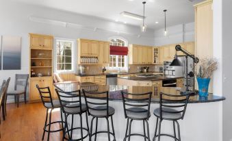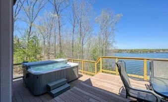 Lake Anna lakefront dock, private pool, 50-foot water slide, wood-barrel sauna, pet-friendly, kayaks, fishing, grilling, ping-pong/pool table, and gourmet kitchen. Gather 'round the fire pit for s'mores under starlit sky. Take a midnight soak in your secluded hot tub overlooking the lake. No steps to primary bedroom on main floor.