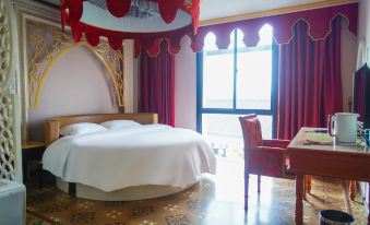 早餐不是在賓館,房間主題很有特色,前台接待熱情洋溢,服務態度好,周邊環境優美,紅紅火火恍恍惚惚