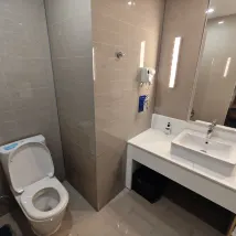 My family of three stayed in a twin room on the 15th floor. It had excellent natural light and a very practical, well-designed layout. The hotel is conveniently located right outside Citizen's Home Metro Exit D, making it easy to take Tourist Metro Lines 1 and 2 to visit many major attractions in the city. Plus, there are plenty of shared e-scooters/bikes right outside, offering a convenient and affordable way to get around. Parking is available right beneath the hotel, with two spacious underground levels providing ample spots. The breakfast spread was extensive, and dishes were replenished quickly; the beef noodle soup, in particular, was absolutely outstanding. The hotel environment is pleasant, and the staff are very courteous. Complimentary bottled water is available on every floor, and the lobby on the first floor even offers free traditional ice pops and mini puddings – a delightful touch! For a hotel in its category, it offers fantastic value for money. I hope to stay here again next time I visit Shendu (Luoyang).