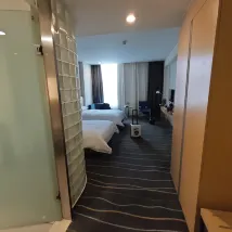 The rooms were spotless, and the front desk service was excellent. We even received a complimentary upgrade to a deluxe room. The location is incredibly convenient for dining, shopping, and getting around. The breakfast spread was generous, and the restaurant staff were very welcoming. We checked in quite late, and the following day, we had unfortunately missed the regular breakfast hours. However, the restaurant staff went above and beyond, staying late to ensure we still got breakfast. We're truly grateful for their exceptional service!