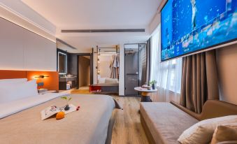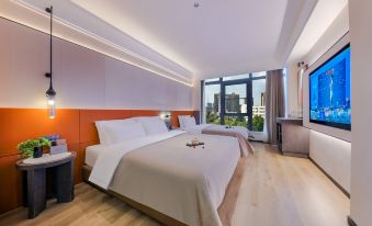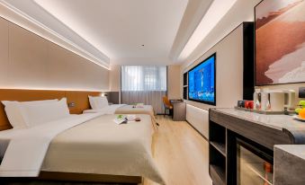 服務太熱情了,進門有人迎接並幫着拿行李,前台小美女幫我們辦入住,另一個小美女幫我們接飲品還會提醒我們雪糕是免費的,位置;很便利出門就是公交站牌和地鐵口C口,距離麗景門和應天門很近,衞生:衞生很乾凈,阿姨很熱情, 房間小度控制電視和燈光,店挺新的,下次來洛陽還住這家店,
