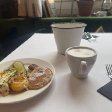 The hotel has a great location and is newly renovated. I especially loved the window-side desk in the room; it was super practical. The only downside was the limited space for hanging clothes. There's a coffee machine, the bathroom has a window, and the room window and TV are both very large. The breakfast was very plentiful and delicious; you can even take the bread from breakfast away. The restaurant has barbecue in the evening, but it's not cheap. Highly recommended! Rooms with balconies are a bit more expensive but not very practical; save your money for better food!