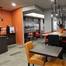 This photo is of the breakfast place. I think the layout on the first floor is pretty good and the front desk service attitude is good.