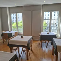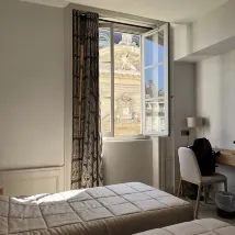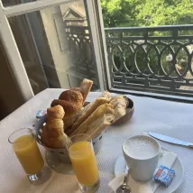 Excelente ubicación, en pleno centro al lado de l9 más importante y los restaurantes. Entre ambos ríos. Vistas increíbles desde la habitación al teatro de Lyon. La habitación era muy pequeña. El suelo tenía inclinación. No entiendo lo de que la almohada sea un cuadrado porque cada vez que te mueves te sales de ella y muy baja. Hay opción a desayuno por 8 euros más que se paga allí que consiste en café o infusión, una baguette, un cruasant y mantequilla, mermelada, nocilla... merece la pena porque la comida en Lyon es hiper cara.