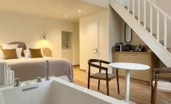 A continental breakfast is available each morning at the luxury MiHotel Le Gourguillon. Guests can also find traditional French restaurants within 10 minutes' walk.