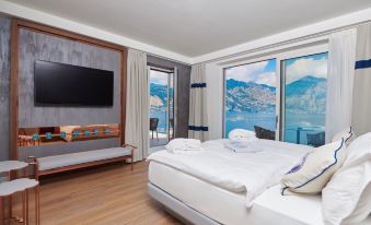 Loved this hotel. The location was excellent, lake front but so close to the old town, we didn’t use our car the whole time we was there as everything close by including the ferry stop so explored the lake by boat. Many guests took morning dips in the lake, I dipped my toes which was enough for me. Our room had direct access to the lake which our puppy loved, the breakfast was a very high standard and all the staff were friendly. We stayed in room 5 in the living suites block on the 01st October 2025 and the weather was lovely in the day, jumper needed for the evenings. The price was a little high but worth it.