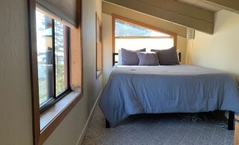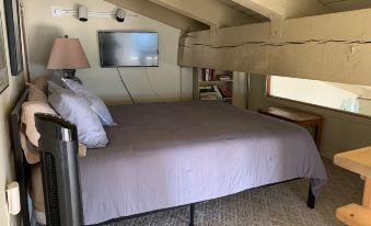 After a day of skiing and "apres ski", sleep with come early to many. Our guests enjoy three comfortable queen beds, each on a separate level. Expanded loft/bedroom one is on level two, with a wall mounted TV is open, bright and cheery. Next on level three, is a large bed/sitting room with a queen bed, wall TV, and views of the Sherwin Bowl and National Forest. From level three, the perimeter stairway takes you to level four, to the "sky watcher" loft/bedroom with a queen size bed, and is open, bright and private. Young and old alike, enjoy the sweeping panoramic views of the Valley. The master bathroom, (level three) has a deep soaking tub and separate shower. The downstairs facility, a powder room, and separate shower.