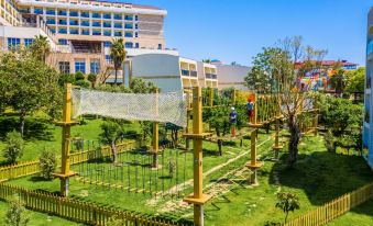 Location and Environment: The hotel is located near a beautiful beach and promenade, offering easy access to excursions and local attractions in Side. The grounds are well-maintained, full of trees and flowers, creating a visually appealing environment for guests.