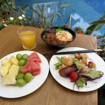 Response from Property: Dear guests, thank you for choosing Feihua Hotel. We are delighted that you are satisfied with our guest rooms and dining services. Drawing on the cultural heritage of southern Yunnan, the hotel meticulously captures the rich ethnic customs and traditions of the region. From the attire, totems, flowers and trees, to the structure and decoration, every detail embodies the hotel's exquisite style. Every guest can experience the relaxation and joy of "returning to nature." Here, every detail is meticulously crafted to provide guests with a unique and immersive experience. We look forward to welcoming you again!