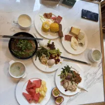 The breakfast was plentiful and the environment was pleasant, with everything you could need. The rice noodles and er si (rice vermicelli) were as good as those served outside, and the homemade pao lu da (pao ru da) and milk tea were both delicious! Since my child is 1.21 meters tall, they thoughtfully helped me negotiate with the front desk in advance regarding accommodations and other amenities.