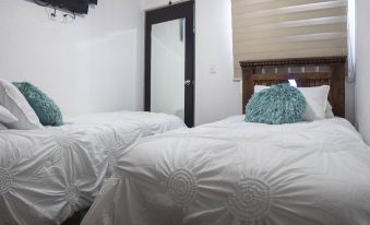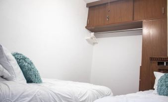 2 bedrooms: 2 single beds 1 sofa bed and 1 queen bed