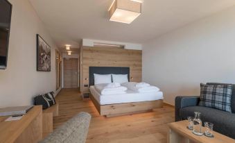 Premetto che l’hotel è molto bello, abbiamo mangiato bene e la nostra stanza era molto bella, su questi aspetti siamo stati soddisfatti. La mia valutazione negativa riguarda il fatto che prima di effettuare la prenotazione, ho chiamato telefonicamente per chiedere se c’era la possibilità di usufruire dei servizi wellness sia prima del check in che dopo il check out e mi è stato confermato che ciò era possibile, questo è il motivo per cui abbiamo prenotato presso questa struttura e non un’altra. Al momento del check in però abbiamo scoperto (ore 10:30) che tutti i servizi - tranne la piscina al -1, avrebbero aperto solo alle ore 14 e quindi a malincuore abbiamo lasciato la struttura in cerca di qualcosa da fare nell’attesa (ci è stato proprio detto in reception: vi consiglio di andare a fare un giro….) Da nessuna parte c’è scritto che tutto apre alle 14 e neanche telefonicamente ci è stato specificato. La cosa che però mi ha deluso maggiormente è stato al momento del check out: abbiamo chiesto conferma di poter utilizzare tutti i servizi wellness e ci è stato risposto che il tutto era fattibile, ma ad un costo di euro 70 di Day Spa (a coppia). Cosa che non era stata assolutamente menzionata in fase di prenotazione e che per un 4 stelle sudtirol è fantascienza.. Per me la gestione e la cura degli ospiti e la trasparenza sono un grande NO. La struttura non deve solo essere bella e curata, va anche gestita con amore verso i propri ospiti.