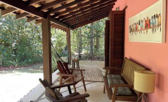 OFF THE BEATEN PATH--Cassange Beach is waiting for you at Terrabruza, a sun-dappled open air home hidden in the tropical forests on a narrow isthmus between the Atlantic Ocean and the sweetwater Cassange Lake. The two-bedroom main house and the two-bedroom guesthouse features high ceilings, wrap-around porches and comfortable king-sized beds and AC units in each bedroom, ensuring a phenomenal night's sleep for all guests. With high-speed internet, a spacious cook's kitchen with all modern appliances, and a dining table that seats eight people, it’s easy to get comfortable in this idyllic setting. It’s a great place to disconnect for as long as you'd like; you can watch entertainment on the 65" Samsung smart TV or just lie in a hammock to unwind in the ocean breeze.