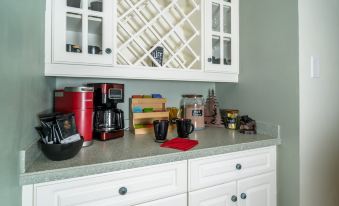 All linens for bedding, towels and washcloths are provided. Paper goods such as toilet paper and paper towels are provided. The kitchen has dishes, cups, utensils, cookware, microwave, and coffee maker. Simply bring your clothes, toiletries and food. Washer and dryer are available.