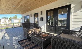 Welcome to our Wine Country Gem in downtown McMinnville!! This vintage 1930s bungalow was renovated in 2023 from top to bottom to preserve its charming character with modern upgrades and amenities. Everything in the bungalow is brand new! The open concept floorplan is perfect for entertaining with two sets of French doors leading out to a spacious, all season covered porch that is a stones throw away from Flag & Wire Coffee Roasters, the Grain Station Brewery and Restaurant, Alpine Crossing and Kitchen, Eyrie Vineyards, Mac Market and so much more. The spacious living room features gorgeous art from the Erin Hanson gallery, a large sofa, loveseat and accent chair and a fabulous fireplace. The beautiful designer kitchen is fully equipped with high end appliances, including a gas stove and oven, luxurious Quartz countertops and a farmhouse sink. The 2 bedroom, 1 1/2 bath bungalow also features designer tile and lighting, shiplap accent walls, luxury wood plank flooring, and central heating and air conditioning. When you stay at our Wine Country Gem, you don't have to compromise on style, charm, location or convenience!!!