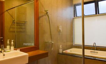 Villa & Resort Vimala Hills Gadog Puncak A 3BR offers accommodation in Puncak, Bogor, featuring three cozy bedrooms with space for up to 9 guests. The property includes swimming pool, living room, and free WiFi. Each room is equipped with air conditioner. The bathroom comes with bathtub and shower. Guests can easily prepare their own meals in the fully equipped kitchen or visit Bumi Sampireun Restaurant. Other dining options are also located around the property. Other facilities at Villa & Resort Vimala Hills Gadog Puncak A 3BR include balcony and free parking lot. Villa & Resort Vimala Hills Gadog Puncak A 3BR is located in Vimala Hills, a premium villa & resort complex which features children playground, deer park, and fitness center. The nearest airport is Halim Perdanakusuma International Airport, 54 km from the property.