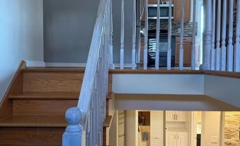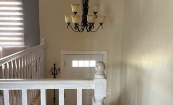 The home was recently re-done, redecorated, and finished, so everything is very clean/deep-cleaned. The garage is spacious and clean, able to fit up to two cars. Spacious backyard that includes a patio (furniture included!). You can also find a fire pit in the backyard as well, perfect for s'mores! The basement is very spacioud along with the garage. In the basement you can find a dryer and washer along with a sink. There is plenty of storage around the house as well. 3 bedrooms that all include queen beds and each their own closet, one closet having a dresser included. A dresser + mirror can also be found in another room (not in the closet). Each room is equipped with a nightstand + lamps. Beds come with bed sheets and pillows. Both bathrooms are stocked with hygiene and personal care products, including towels. Kitchen is already equipped, along with a 6 person dining table included. Living room includes a coffee table and free Wi-fi.
