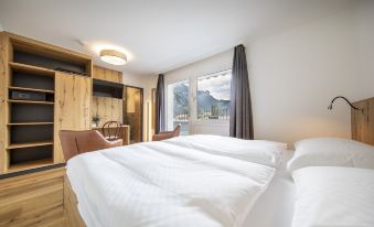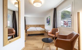 We spent one night as we hiked along the Via Alpina— coming from Engstlenap , and on our way to Schwarzwaldalp. The woman who checked us in (owner?) was just lovely, so warm and helpful. Immediately gave us some local tips about the town and our hike ahead. The room was clean and modern, with nice design touches like two mid-century leather chairs, a plant, and a tall rotating fan (which helped because it was HOT!!). She also offered free passes to a local gym, which my son used. We ate at the hotel restaurant- delicious wood fired pizza. There was a concert in the town square at night- very festive and fun to walk around. Just walking the streets as the sun set, And getting the view of the surrounding mountains, was beautiful! Breakfast was delicious- great coffee (espresso/cappuccino machine was self serve), croissants and traditional meusli, cheese and meats. Loved this hotel- highly recommend!