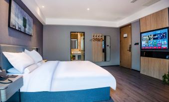 位置絕佳,出門就是小吃街,逛街吃飯都超方便,去景點也衹要打車10分鐘。前台服務熱情專業,從入住到離店全程細緻周到,主動提供周邊攻略和房型升級,響應速度極快。房間配備電動窗簾、智能馬桶、手機操控燈光空調,隔音效果一流。 房間整潔如新,床品親膚柔軟,浴室乾濕分離且配備高品質洗浴用品。