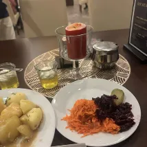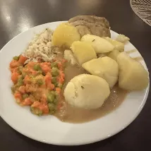 We had a family room (2 double rooms with a connecting corridor) and half board. The room was completely worn, especially in the bathroom. We locked the door the first night, but the next morning it wouldn't open, and after we called the maintenance man, he told us not to lock it anymore... There are no seats on the balcony, and you could walk onto the neighbors' balconies from there. The food was buffet style, which was OK. You could always find something to eat. The pool and sauna were also OK. However, there's no changing table in the changing room for changing the little ones or changing them after swimming. That was very inconvenient... Parking is also limited, so it will probably be complicated in high season. It's best to book in advance, if at all possible. The place is very nice, but we won't be coming back to the hotel.