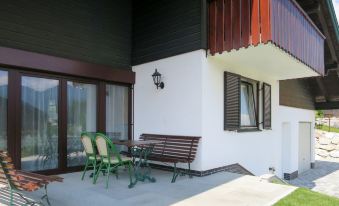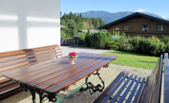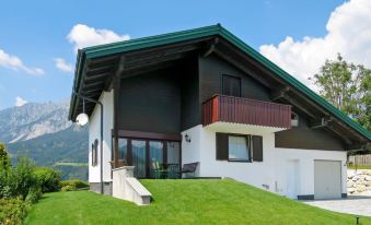 Cottage "Jung", renovated in 2017. In the district of Kaindorf 2 km from the centre of Gröbming, 14 km from the centre of Haus im Ennstal, 20 km from the centre of Schladming, in the residential district, 10 km from the lake, 11 km from the skiing area, in the countryside. Private: large garden 700 m2 (fenced) with lawn. In the house: storage room for bicycles, storage room for skis. Stepped path (5 steps) to the house. Parking (for 4 cars) on the premises, single garage at the house. Supermarket 2 km, restaurant 2 km, bus stop 200 m, railway station "Stein an der Enns" 15 km, outdoor swimming pool 2 km, bathing lake "Aich" 10 km. Tennis 1 km, ski lift 11 km, gondola lift 11 km, ski bus stop 50 m. Well-known ski regions can easily be reached: Hauser Kaibling 13 km. "Jung", 4-room house 120 m2 on 2 levels. Cosy and wooden furniture furnishings: living room with open-hearth fireplace (only for decoration), dining table, dining nook, satellite TV and hi-fi system. Exit to the terrace. 1 room with 2 beds and bath/shower/WC. Open kitchen (oven, dishwasher, 4 ceramic glass hob hotplates, toaster, kettle, microwave, electric coffee machine). Sep. WC. Underfloor heating. Upper floor: 1 room with sloping ceilings with 2 beds. 1 room with sloping ceilings with 1 double bed. Exit to the balcony. Shower/WC. Oil heating. Balcony, 2 terraces partly covered. Terrace furniture, barbecue (portable). Very beautiful panoramic view of the mountains. Facilities: children's high chair, baby cot. Internet (WiFi, free). Please note: non-smoking house. Maximum 1 pet/ dog allowed. When there are less than the maximum number of guests staying at the property, not all of the housing units will be available for use.