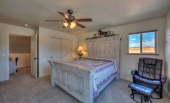 Blue skies and mountain vistas stretch all around you as you unwind on the back patio. After a long day exploring the area and its beautiful sites, hop in the private hot tub and watch the stars come out above you. Keep dinner simple and fire up the BBQ grill. An outdoor bar is the perfect place to sip on a cold beer or your favorite glass of wine.