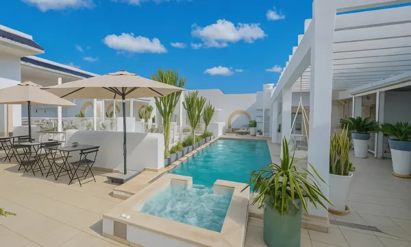 Thank you Sarah, and everyone at Dar Benti who helped make our family weekend in Monastir a delight. This pair of historic mansions in the heart of the ancient city has been gorgeously and sensitively renovated. You feel like you’re in an Architectural Digest spread. We came with our kids and grandkids aged 3 and 9 months and the giant family room (and crib) we were upgraded to were perfect. There was a high chair, and even adorable child friendly place settings at the lavish and delectable breakfast. Although it was too cool in February to make much use of the chic roof deck and pool, we enjoyed the variety of sitting areas and the lovely central garden. A perfect location for sightseeing- we walked everywhere. I highly recommend beautiful Dar Benti.