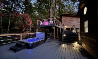 Enjoy the seclusion of this Luxury Tiny home with loft and bedroom in the trees set in the middle of the Cherokee National Forest while relaxing in the large outdoor space . Enjoy a covered 14x16 outdoor space with 14foot fireplace and Hottub set on 34 acres . Private hiking trails on the property -bordering the Cherokee National Forest. Added amenities include upgraded linens, soft robes, complimentary champagne, coffee, water, snacks and bundle of firewood.About pets:No pets allowed.About checkOut:Check out before 11:00 AM.About children:Adults only.About customRules:Hot Tub- *USE AT YOUR OWN RISK* do not step or sit on Hot Tub Cover. Do not place anything into the spa water like fragrance, salts or bath bombs..About checkIn:Check in after 4:00 PM.About smoking:Smoking is not permitted.About minBookingAge:Minimum age to rent: 25.About events:No events allowed.