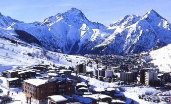 Large bay windows with open views on the main slope of the resort (combe valentin, small needle ...) The apartment is located in the heart of a pedestrian area with gardens, car access by free underground parking.