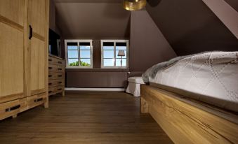 Upstairs are two bedrooms with queen beds. From here, after waking up, you will enjoy the unique, unobstructed view to the dike and, before going to bed, over the most beautiful starry sky. Here, too, we have created a very special oasis of well-being with loving details and exclusively natural materials. The upper bathroom invites to a bath.