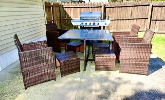 7 days of peace to spend with our son and family before they leave for 4 years. Location is perfect to base, airport, and activities. The neighbors are friendly and the kids laughter was infectious. There were plenty of seating, dish soap, bed linings, towels, paper products. Our pups enjoyed the backyard. The house was clean and no smell of past dogs. I enjoyed the architecture of this house being it was different than others I’ve stayed in. 3 story, narrow steps but plenty of room. I would happily stay again. There is always pros and cons however. The things I noticed that can help you plan ahead was: the kitchen isn’t heavily stocked. There are a few pots, crockpot, coffeemaker. But no dry goods like coffee, sugar, cooking spray, etc. May want to pick up solo cups, or a few from the dollar tree. If using the top floor room we placed a dark flat sheet over one window to keep the sun from heating the room. If you have small dogs keep an eye on them outside as there are a few small openings around the bottom of the fence. For us we have stayed many places and was beyond pleased.