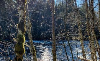We loved this cabin the moment we walked in the door! The cabin is well appointed, cozy, and inviting. The glass-fronted wood stove, radiant heat floors, walk-in shower with a forest view, comfortable bed (again with forest view), and the river trail were all highlights. We can't wait to return!