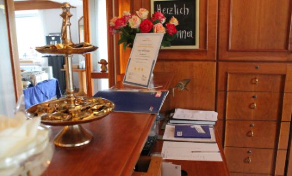 Die Rezeption des Hotels ist im vierten Stock in einem etwas muffigen, alten Raum.