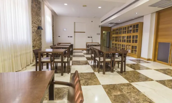 The cafeteria, with extended hours, serves tapas, sandwiches and pizzas.