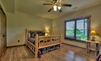 Located within several acres of secluded forest, Grassy Mountain View cabin is ideal for the nature lover, ready to explore the North Georgia Mountains, and the cabin dweller, eager to withdraw from everyday life. The cabin comfortably accommodates up to 6-7 guests, with several entertainment and recreation areas, such as a fire pit, recreation room, and comfortable living area around one of two gas fireplaces. The cabin has high-speed internet and several TVs, but most engaging are the breathtaking views of the mountains that surround the cabin. From the comfort of the indoors or on the patio, you have panoramic views of the Blue Ridge Mountains and a perfect view of both Grassy Mountain and Bald Knob. The hiking, mountain biking, and exploring options are endless nearby in the Chattahoochee National forest or Fort Mountain State Park. The cabin even has a few small trails within our own development. After a long day on the trails, guests are welcome to dip into the spa hot tub or schedule an in-cabin massage.