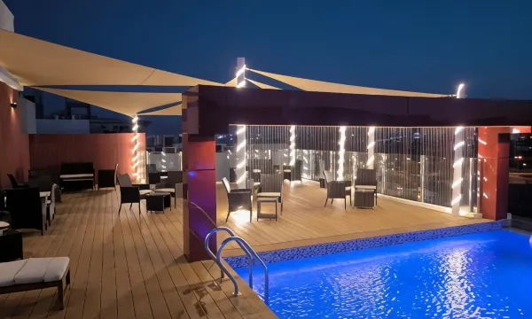 Now for the positives: a large, clean room. An infinity pool on the roof. You can sit there comfortably and enjoy the sunset; the restaurant also serves by the pool, and orders are placed via the in-room phone – super convenient. There's ample free parking. Everything is easily accessible by car.
