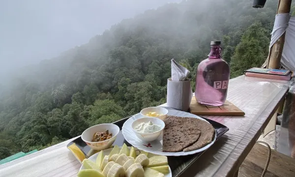 At Ananta Prana Glamping Resort Hotel Mussoorie, enjoy a satisfying meal at the restaurant. A complimentary English breakfast is served daily from 9:00 AM to 10:30 AM.