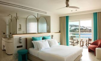 The best example why tourism is Mykonos is decreasing ( it’s a big flop ) 1 - The hotel and the beach club are 2 different companies ( you will get sun-bed by the garbage bins) beach club staff will treat you very badly and ask you to pay more even if in the reservation it’s included sun-beds 2 - the hotel does not have a swimming pool ( who gave the 5 starts ). 3 - the hotel doesn’t have any facilities it’s only rooms and a small gym so it’s Pretty much boring if you are staying over a night. 4 - if you Room is on DO NOT DISTURB they will access to it and some stuff will even use your belonging ( Make up + parfum ) 5 - A bold short guy with beard ( supervisor ) Looking at my wife with bikini like he never saw that before with a weird body language. 6- stayed 5 nights didn’t see a single butler even though it was part of the reservation Overall it’s a waste of money the only fun is watching the manager every time screaming on the staff feels like military camp 🏕️