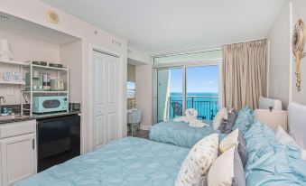 Perfect for families or groups of friends, this studio condo offers a central location close to top attractions, beautiful beaches, and the airport. The space features two comfortable full beds, a well-equipped kitchenette with a sink, microwave, coffee maker, toaster, and mini fridge—providing everything you need to prepare light meals and snacks with ease. Step out onto the spacious balcony to enjoy a soothing ocean view, the ideal spot for everyone to relax and unwind.