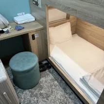 The bed is a bit hard, and maybe it’s a bit difficult to open your luggage cause of the tiny space