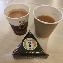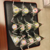 Breakfast in the morning is a triangular rice ball