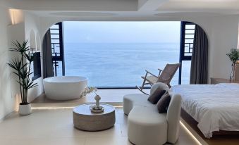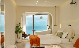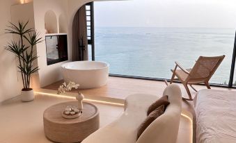 Shiyue Seaside Large Floor-to-Ceiling Window Tub HD Projection Sea-View Double Bed Room